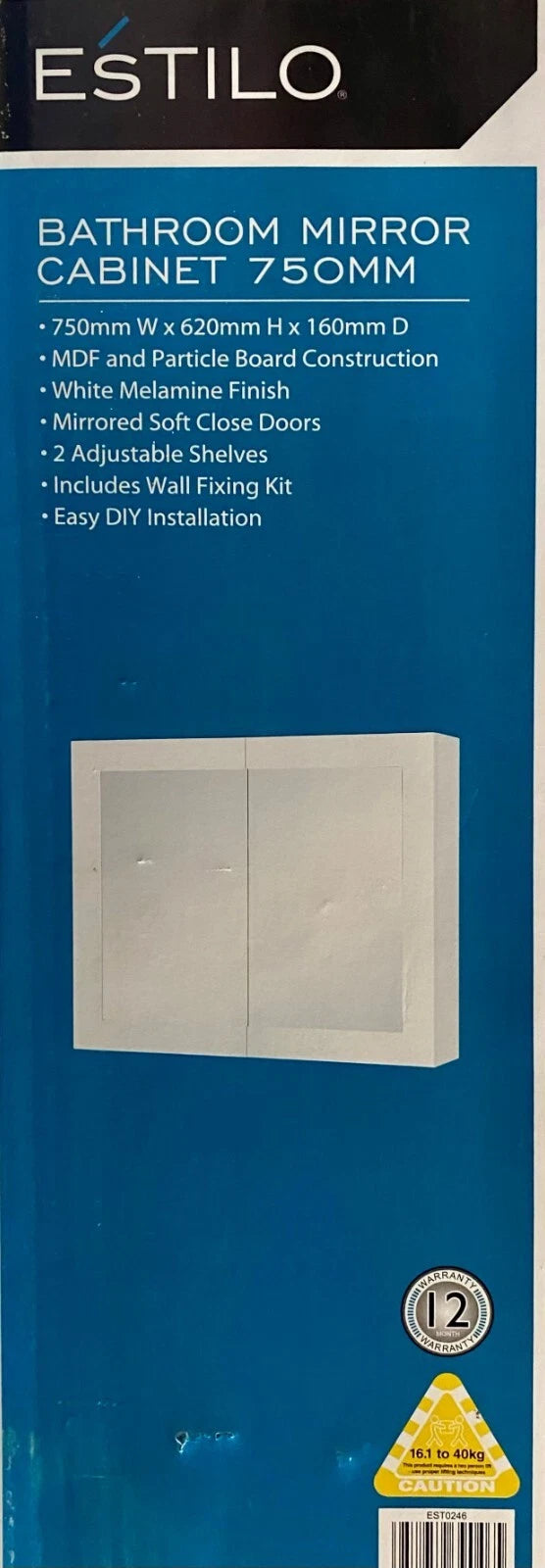 Estilo Bathroom Mirror Cabinet 750 x 620 x 160mm. Easy DIY. Soft close doors.
